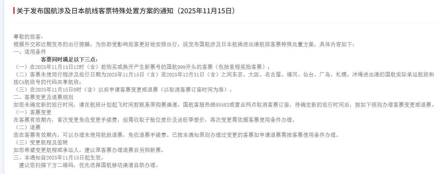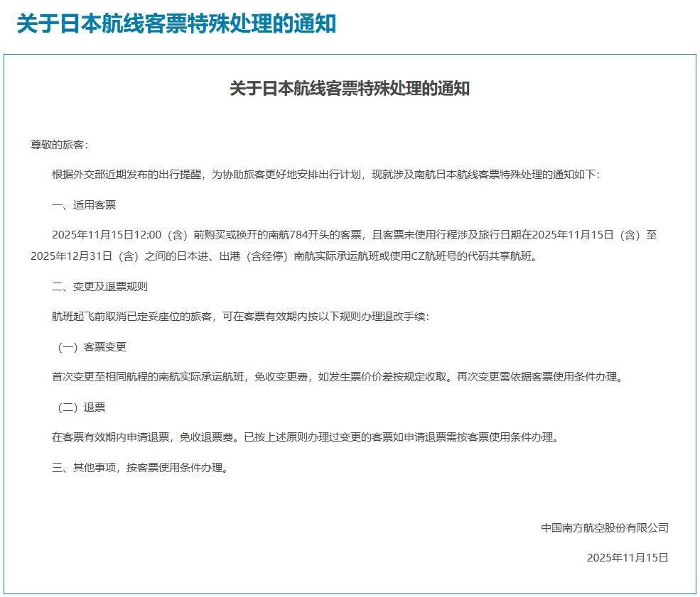【大河财立方消息】11月15日,中国南方航空股份有限公司、中国国际航空股份有限公司、中国东方航空股份有限公司同日发布涉及日本航线客票的特殊处置方案,对于出行日期在12月31日之前且符合相关条件的客票配资资深炒股配资门户,可予以免费退改处理。