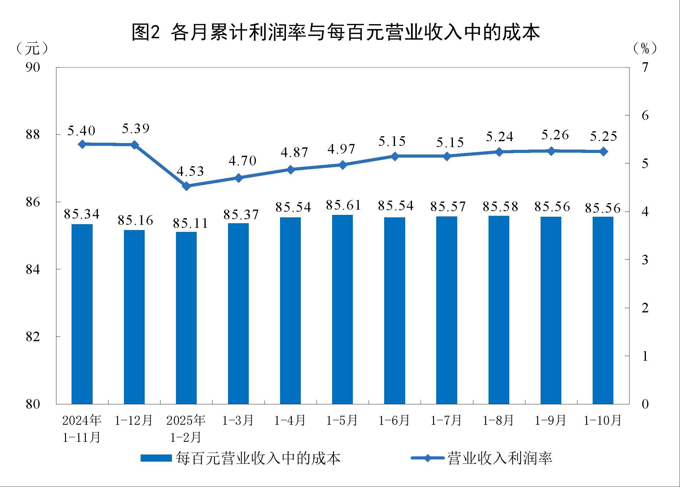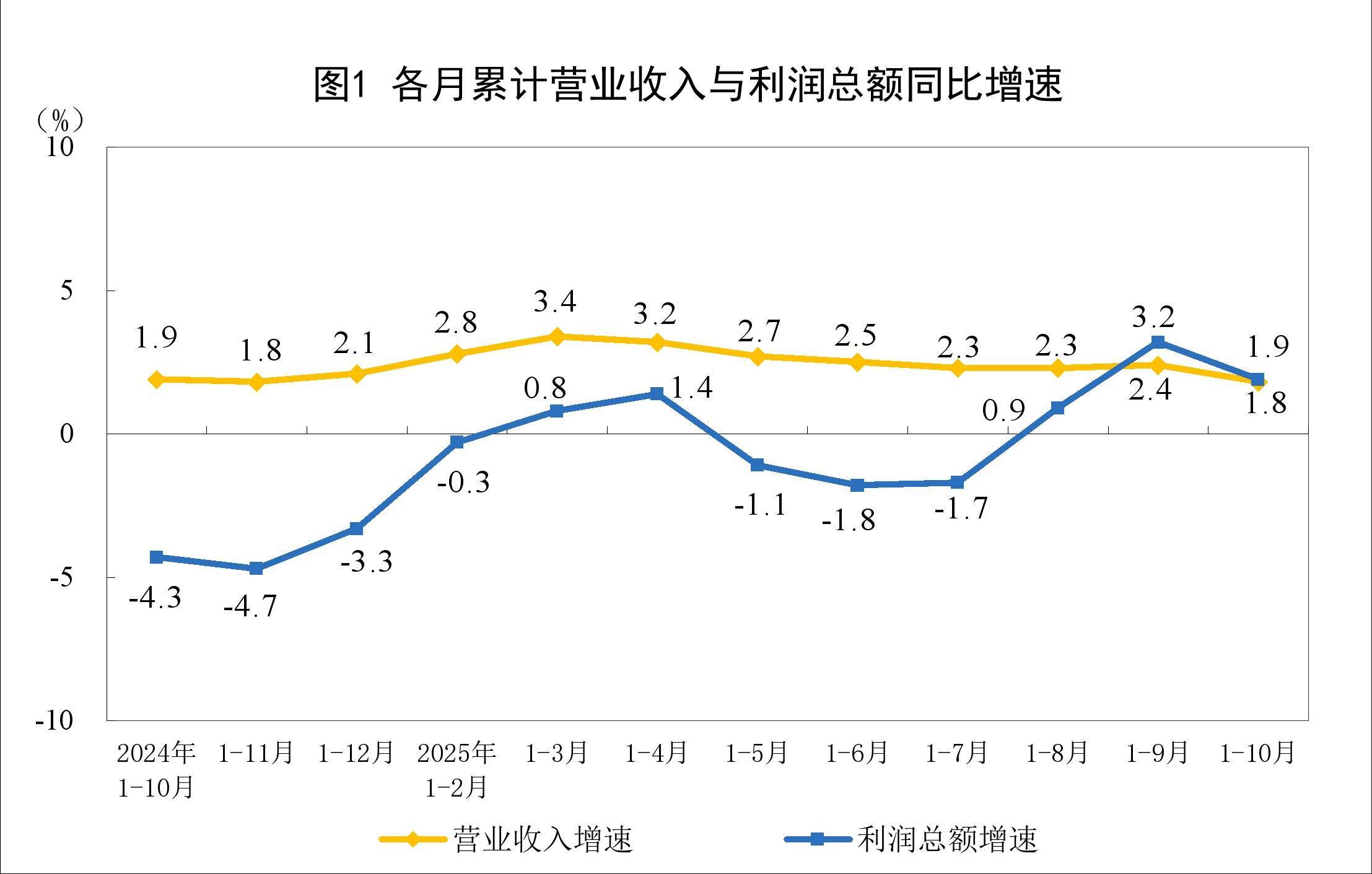r1—10月份,规模以上工业企业实现营业收入113.37万亿元,同比增长1.8%;发生营业成本97.00万亿元,增长2.0%;营业收入利润率为5.25%,同比提高0.01个百分点。