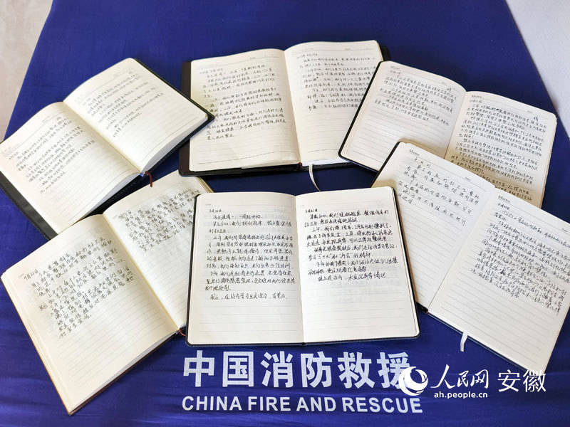 从到站点工作的第一天起,消防员陈俊杰便将每日工作内容和感悟写在日记本上,一晃几年过去,如今已写满了厚厚的6本。