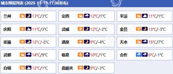 r后天夜间到14日白天,甘南、陇南、天水三州市及定西市南部多云或阴,部分地方有小雪(雨);其余地方多云或睛。河西五市有4至5级西北风。