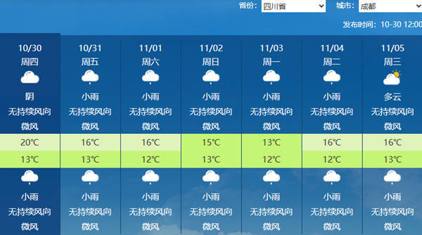 省会成都未来七天将频现降雨。(来源:中央气象台)