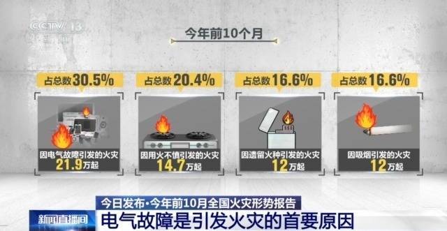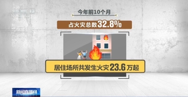 统计数据显示,居住场所是最容易发生火灾的区域,也是导致人员遇难及较大火灾的主要场所。今年前10个月,我国居住场所共发生火灾23.6万起,占火灾总数的32.8%,造成1098人遇难,占火灾遇难总人数的73.8%。