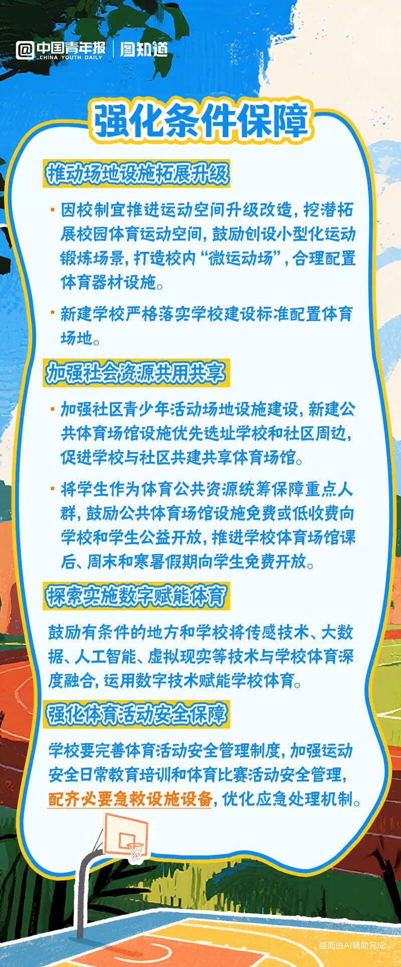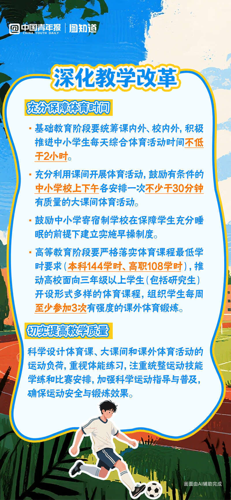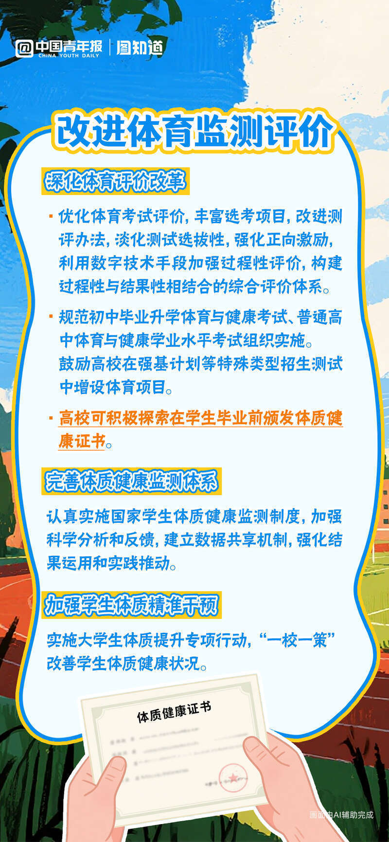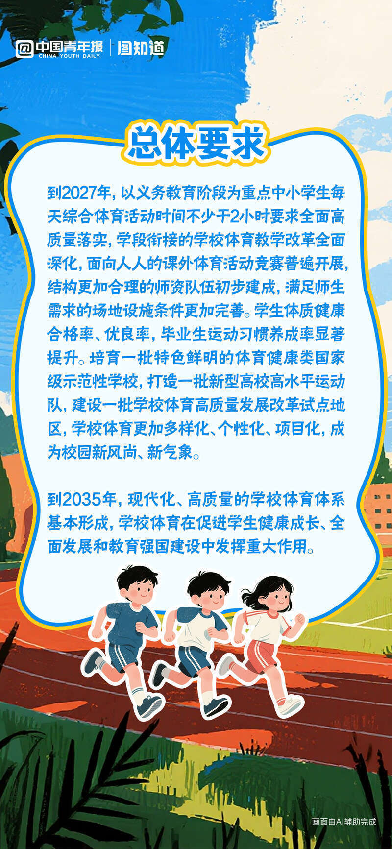 中小学生每天综合体育活动时间不低于2小时,高校可探索在学生毕业前颁发体质健康证书……近日,教育部、国家发展改革委、财政部、人力资源社会保障部、体育总局等五部门联合印发了《关于实施学生体质强健计划的意见》配资信息网配资,提出八个方面重点任务。读图划重点。